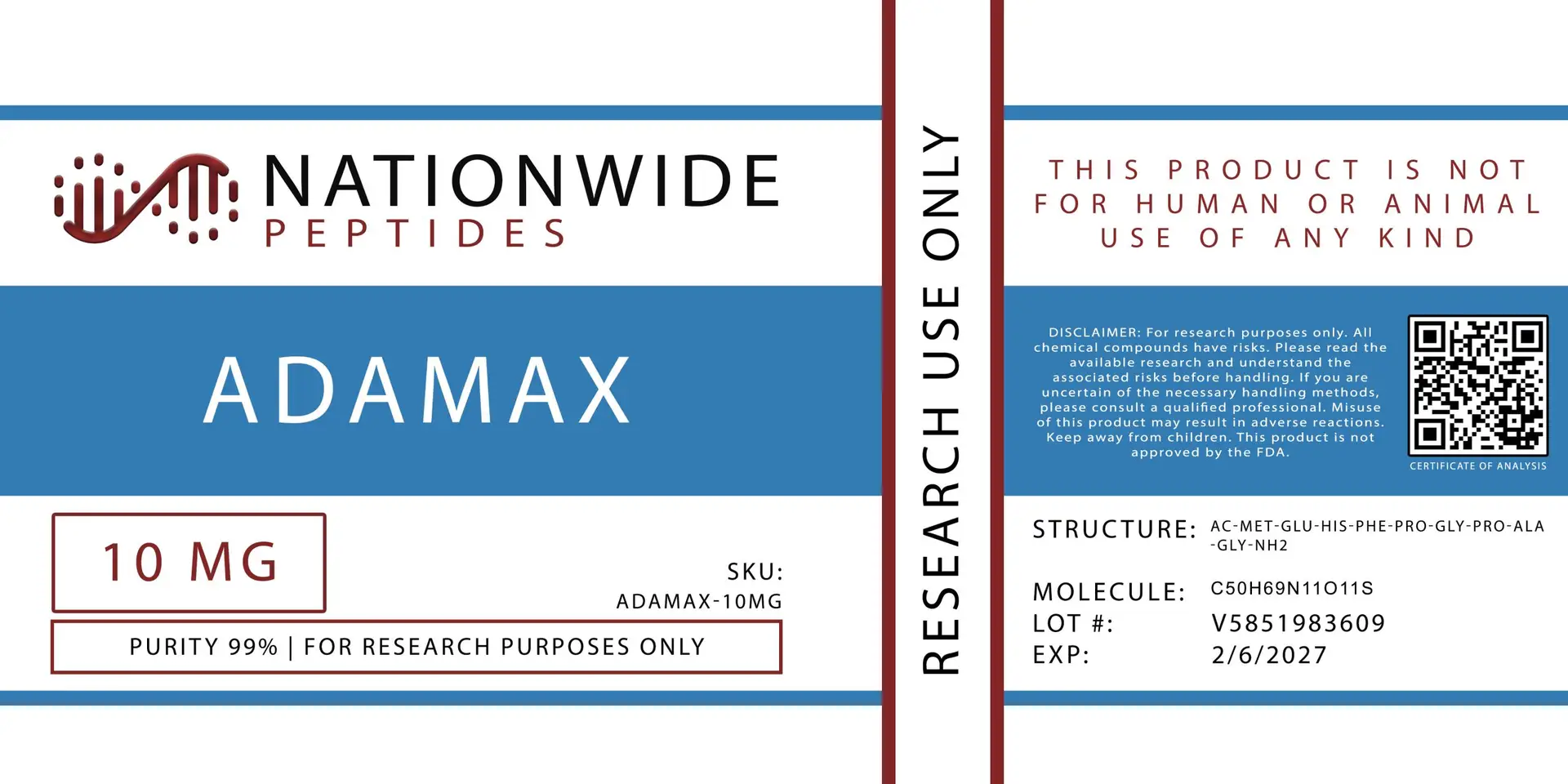 For laboratories requiring dependable Adamax research peptide, our manufacturing process prioritizes reproducibility and scientific precision. Every batch is confirmed for: