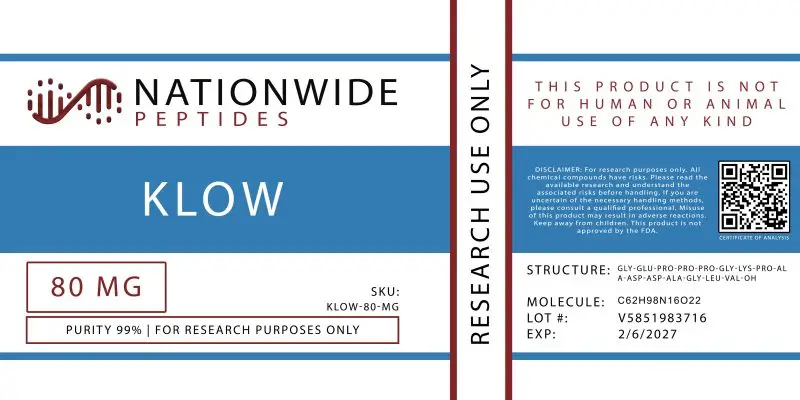 Engineered solely for laboratory research, each batch of KLOW undergoes a comprehensive quality assessment and includes complete documentation, including a Certificate of Analysis (COA), purity data, and compositional verification.